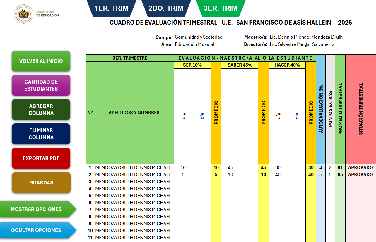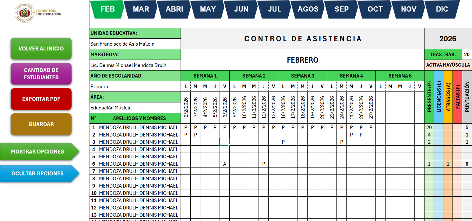 Este sistema ha sido diseñado por el Lic. Dennis Michael Mendoza Drulh para resolver la carga administrativa de los maestros bolivianos, unificando la asistencia y las calificaciones en un solo archivo ligero y profesional.
